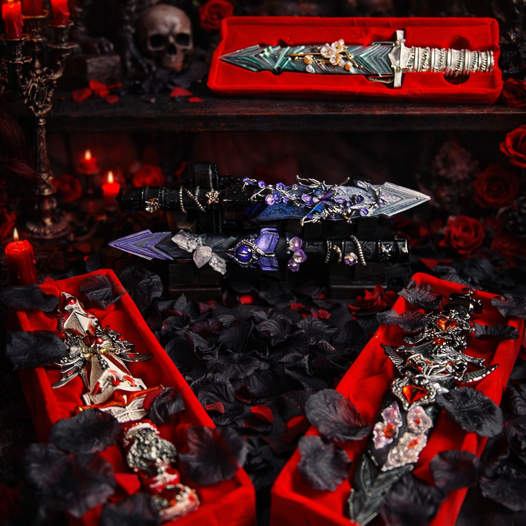 Each dagger takes several hours to craft, paint, cure, and detail. Because they are handmade, processing time is a bit longer — but every piece is one-of-one, unique, and made with care.